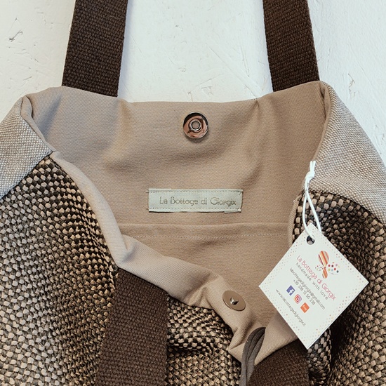 Borsa Big in tessuto con interno in cotone, tasca porta oggetti e bottone a calamita