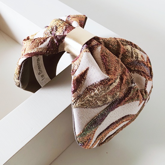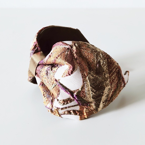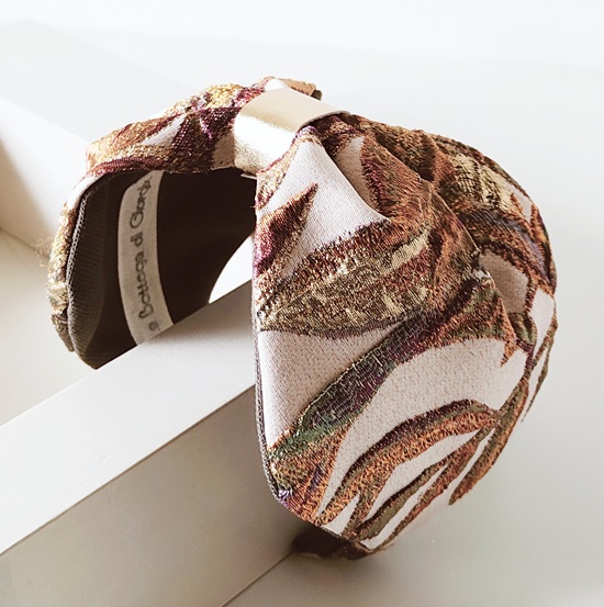 Cerchietto Flake effetto fascia in tessuto damascato rosa panna arancio oro