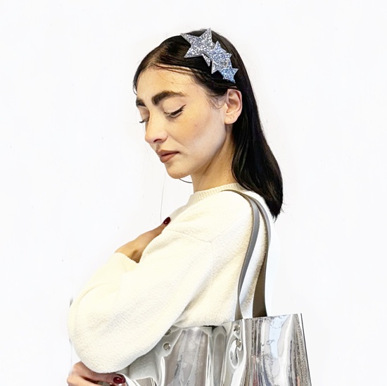Simpatico cerchietto per capelli, realizzato con feltro e tessuto glitter