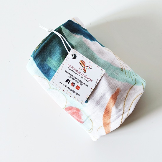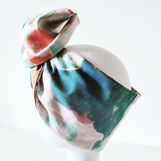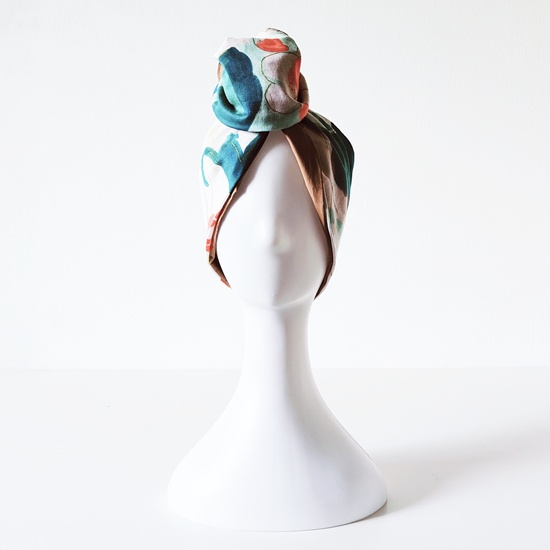 Recensisci per primo “Fascia turbante modellabile in cotone garzato giapponese fondo bianco con fantasia verde, lilla, oro, cachi e rosa”