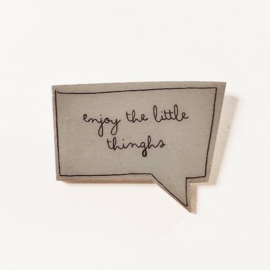 Spilla Linea Words Fumetto Enjoy in legno dipinto a mano e resina